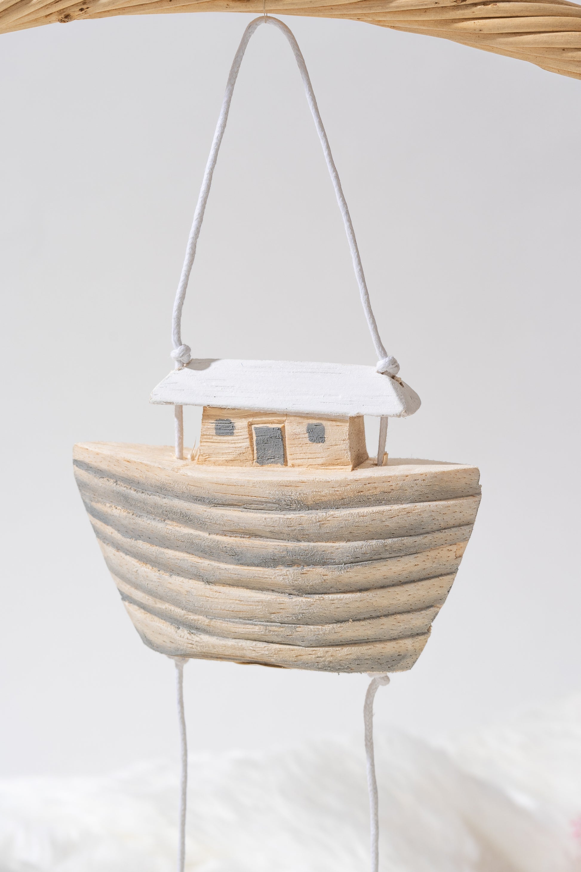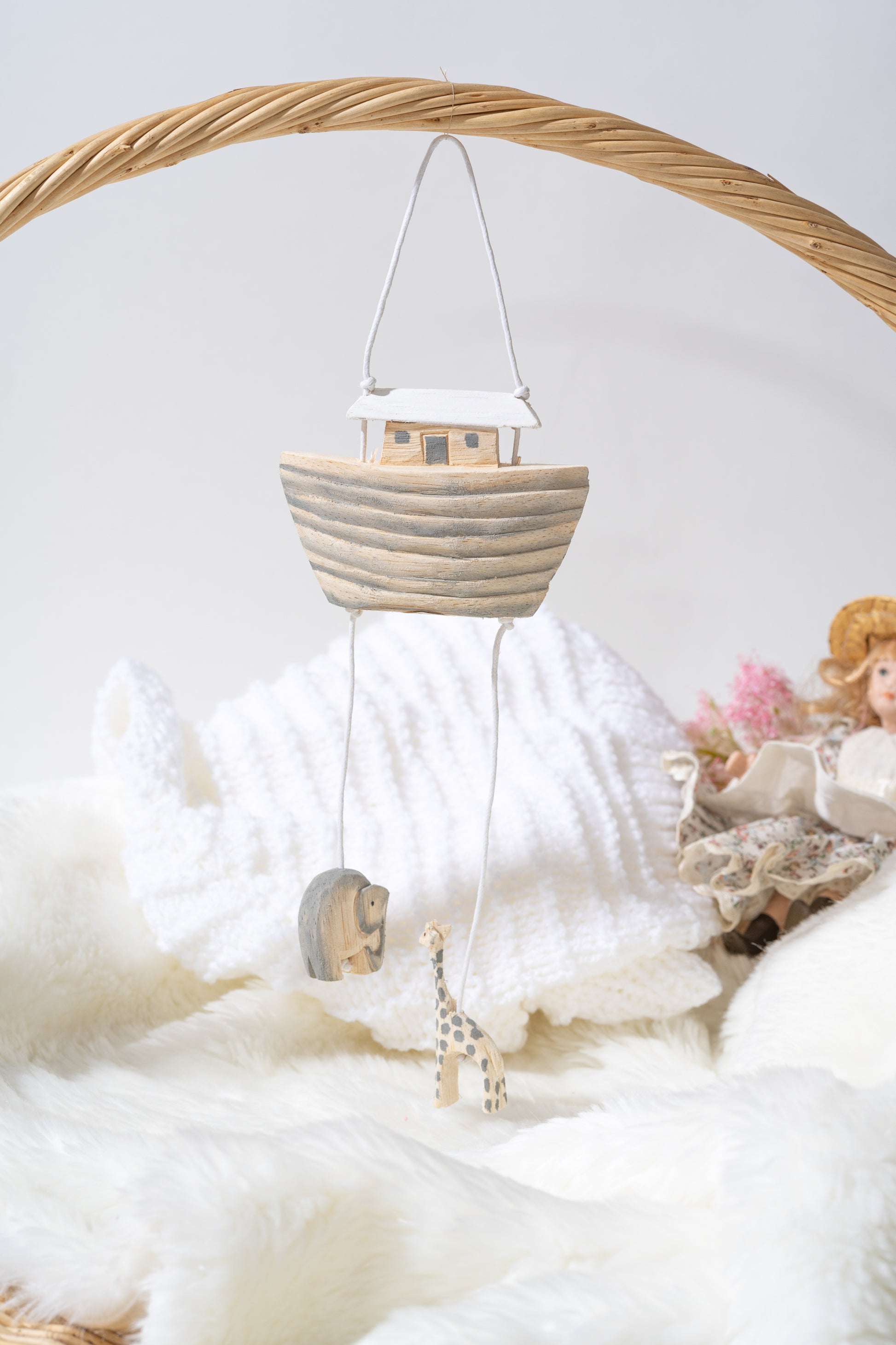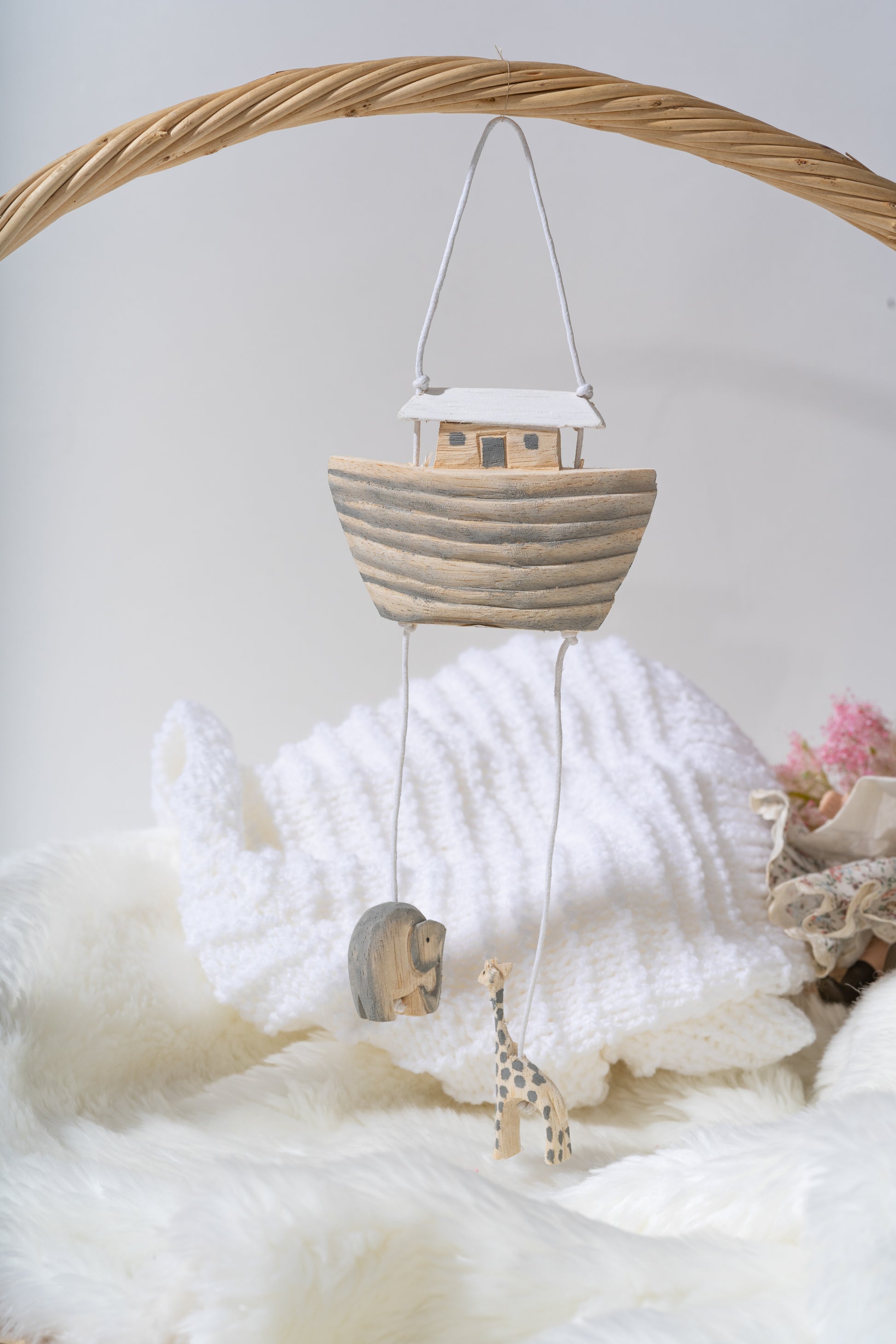 Noah's Ark Mobile wooden children's decor wall hanging. Animals, elephant and giraffe.